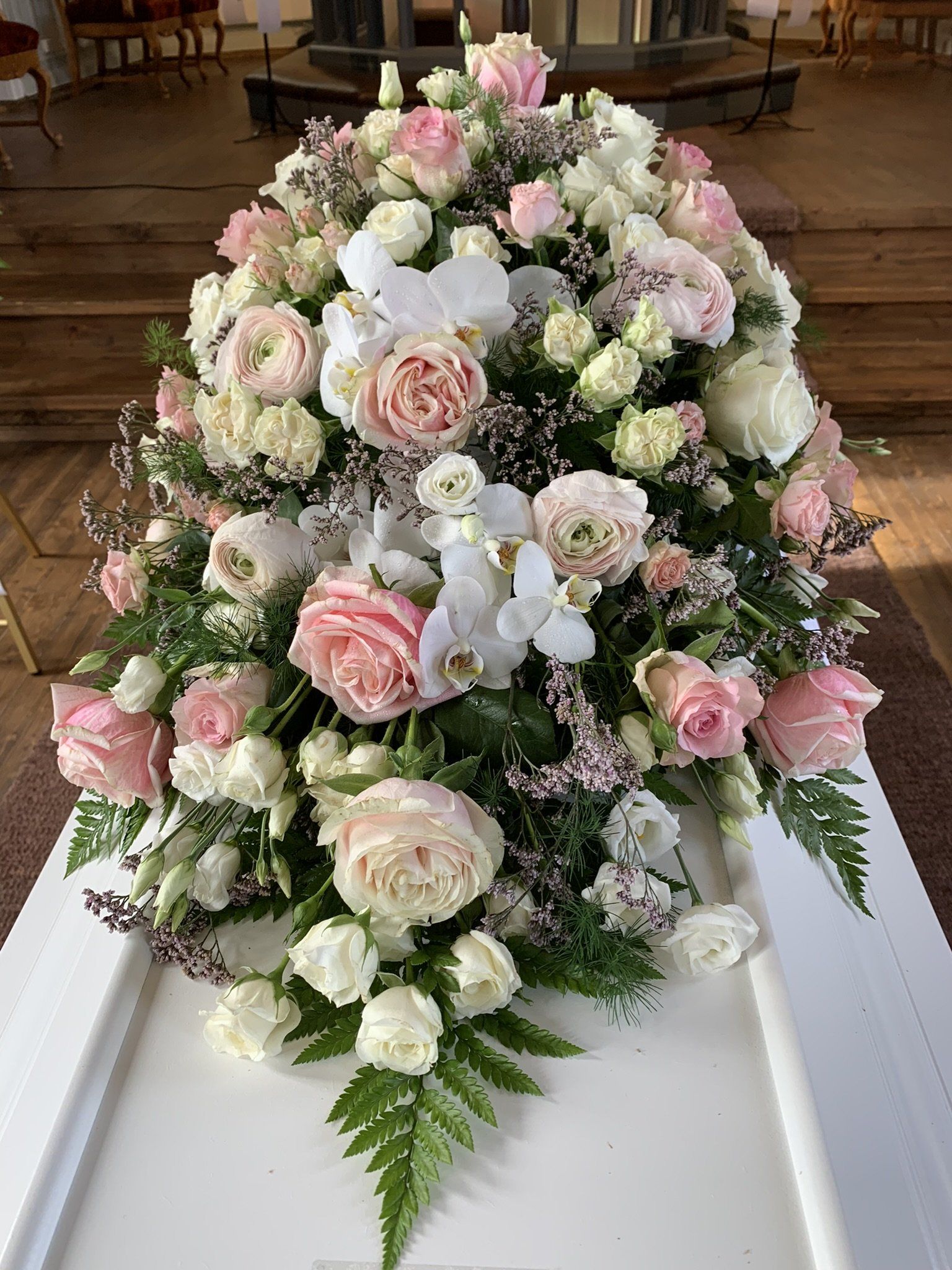 Ved livets slutt rammer blomstene vakkert inn seremonien, samtidig som de bidrar med å fortelle historien til den som har gått bort.